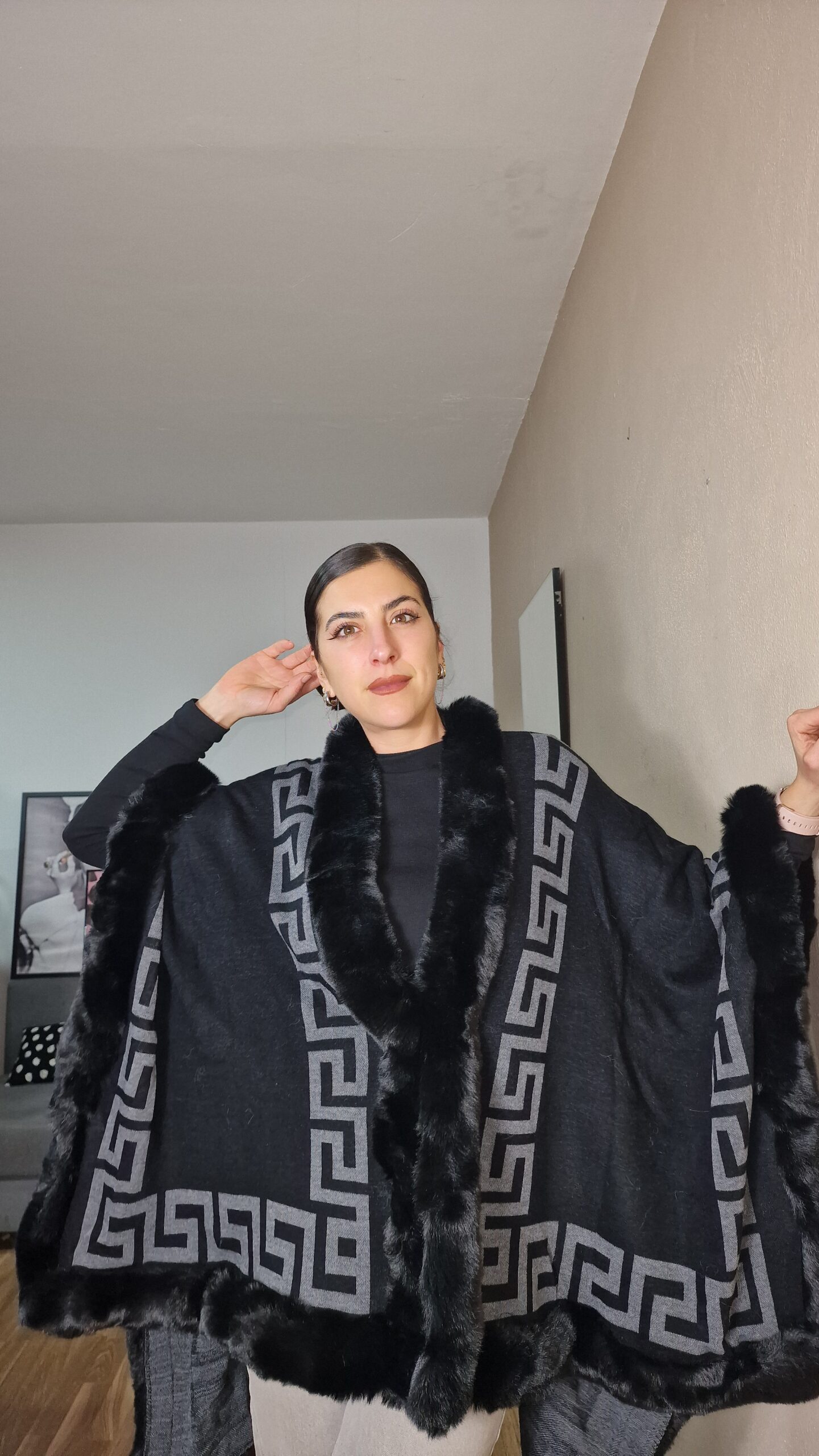 Poncho punto súper buena calidad 30% lana 70% viscosa filo entero pelo