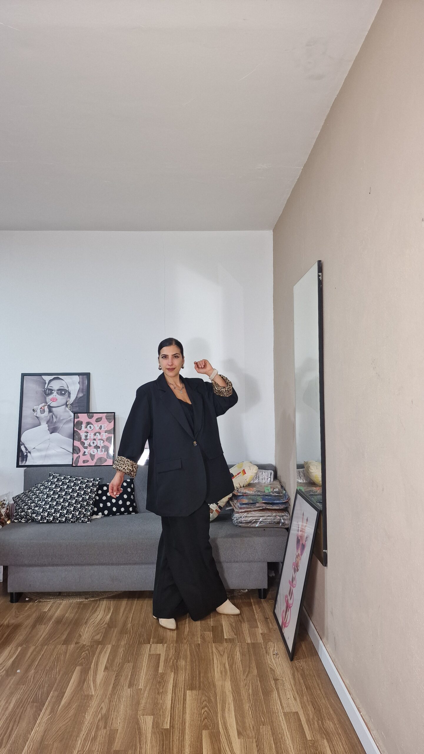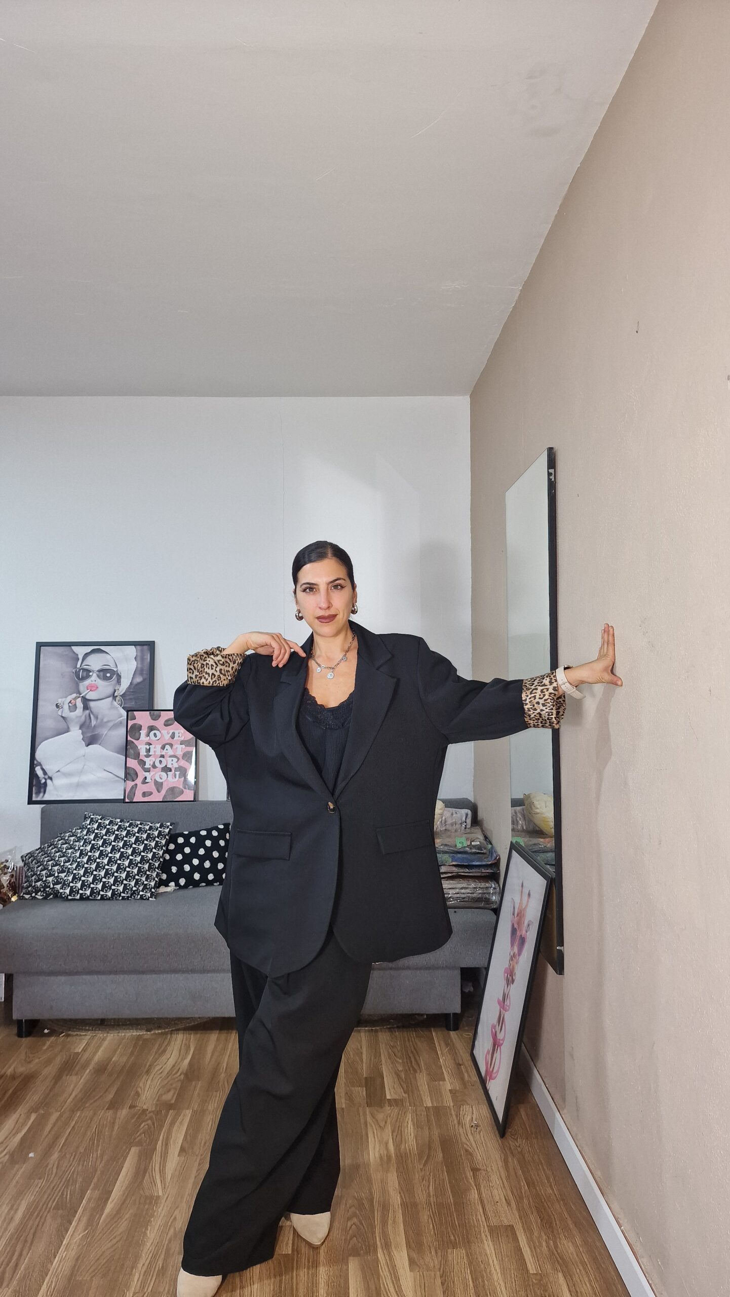 Chaqueta forrada completamente con forro en estampado de leopardo de 100% poliester, chaqueta sin licra de 95% poliester 5% elastan lleva hombreras