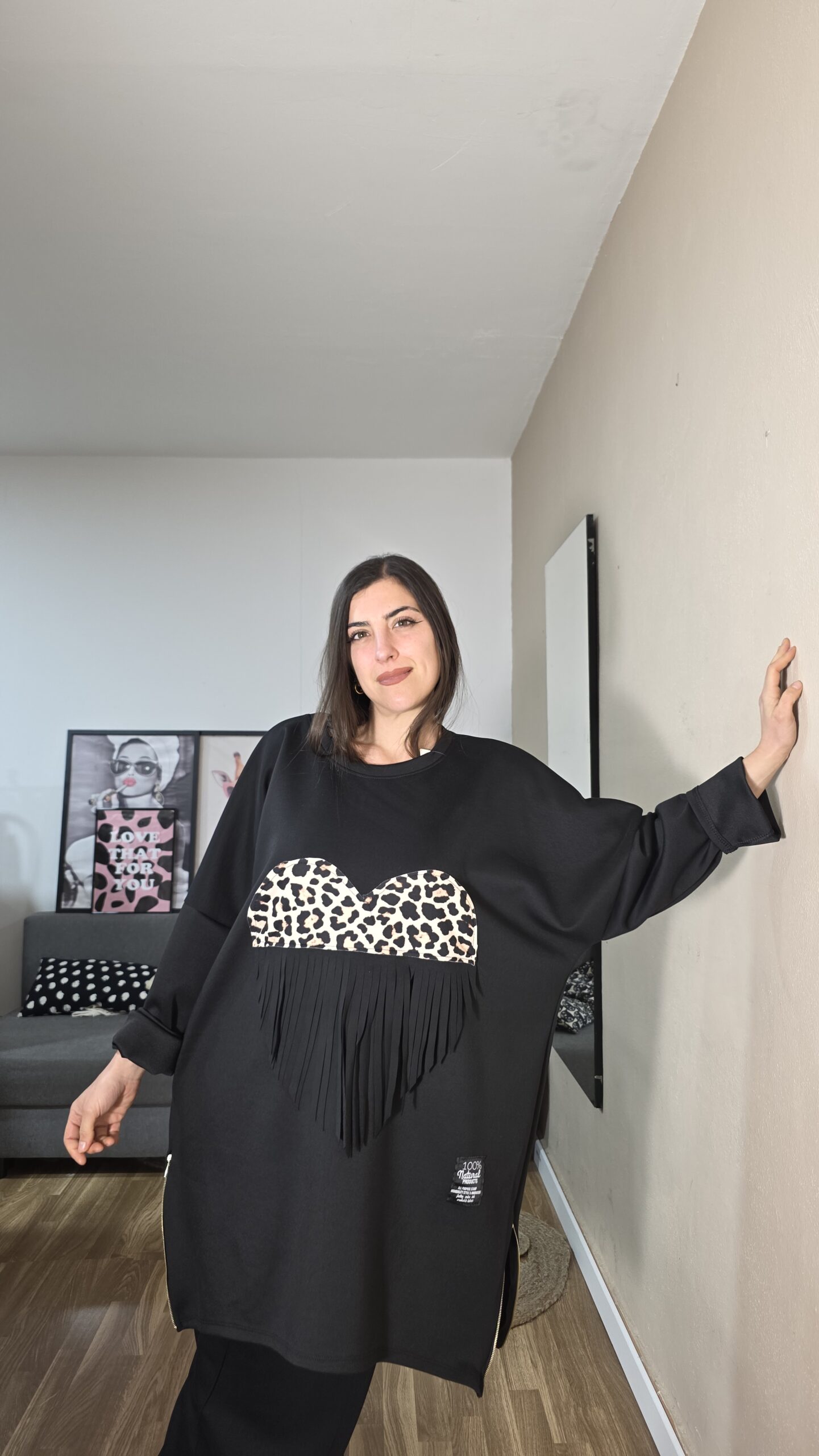 SUDADERA CURVI CORAZÓN LEOPARDO
